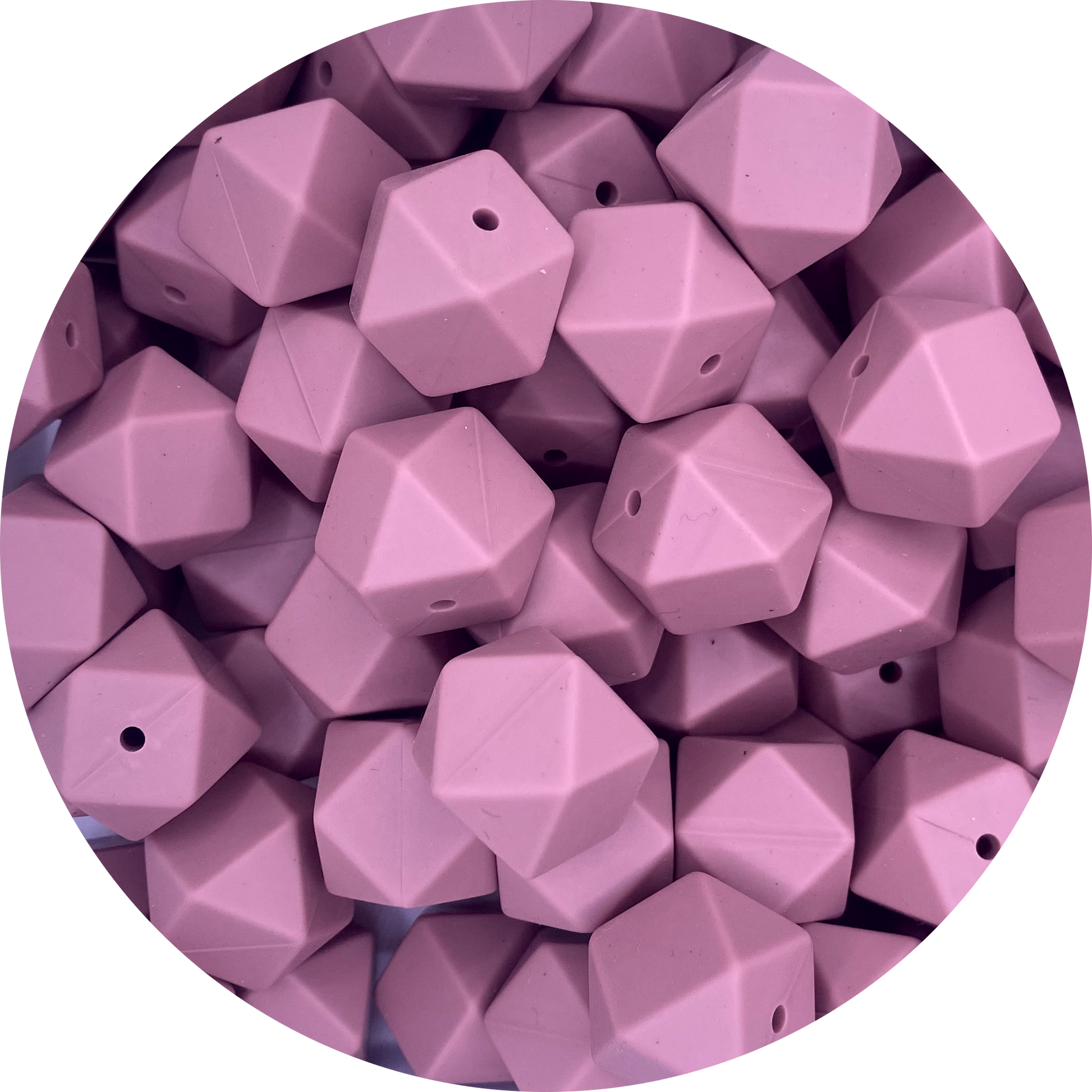 17mm hexagon silicone beads in Vintage Rose.
